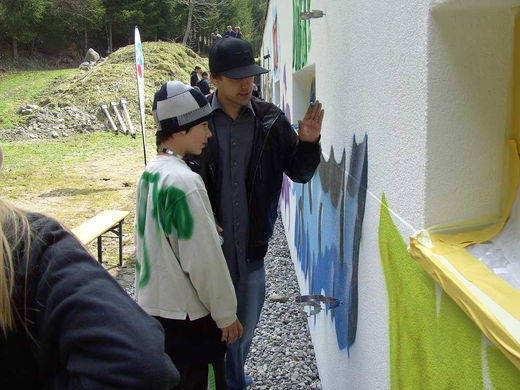 Gemeindegebäude als Graffiti-Kunstobjekt für Jugendliche