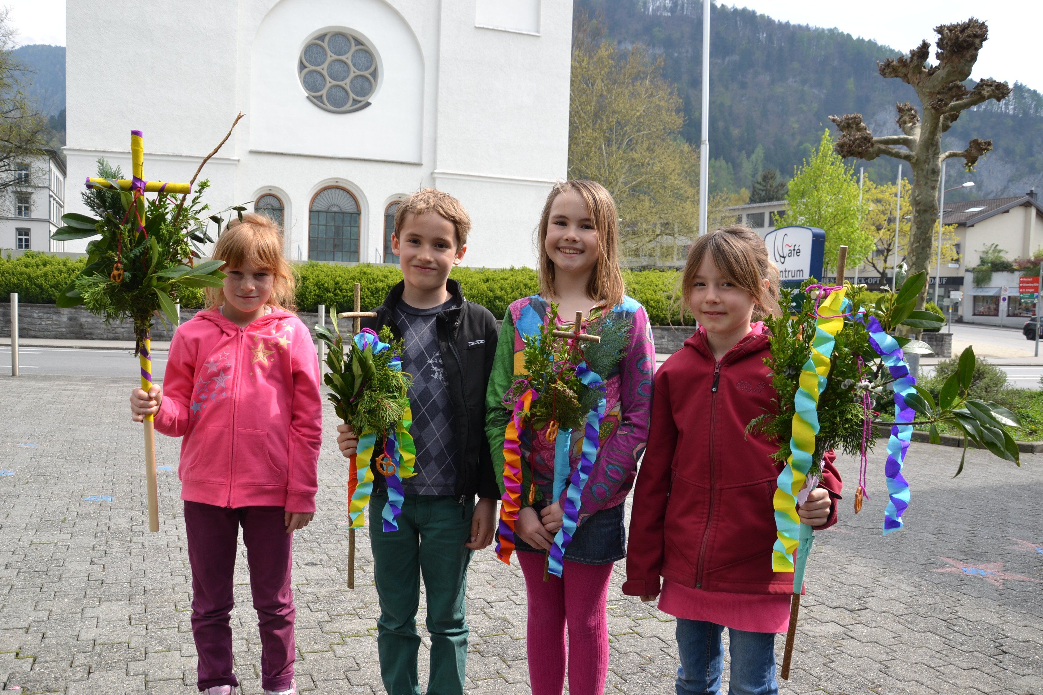 v.l. Sabrina, Stella, Nina und Robin sind sehr stolz auf die selbstgemachten Palmbuschen