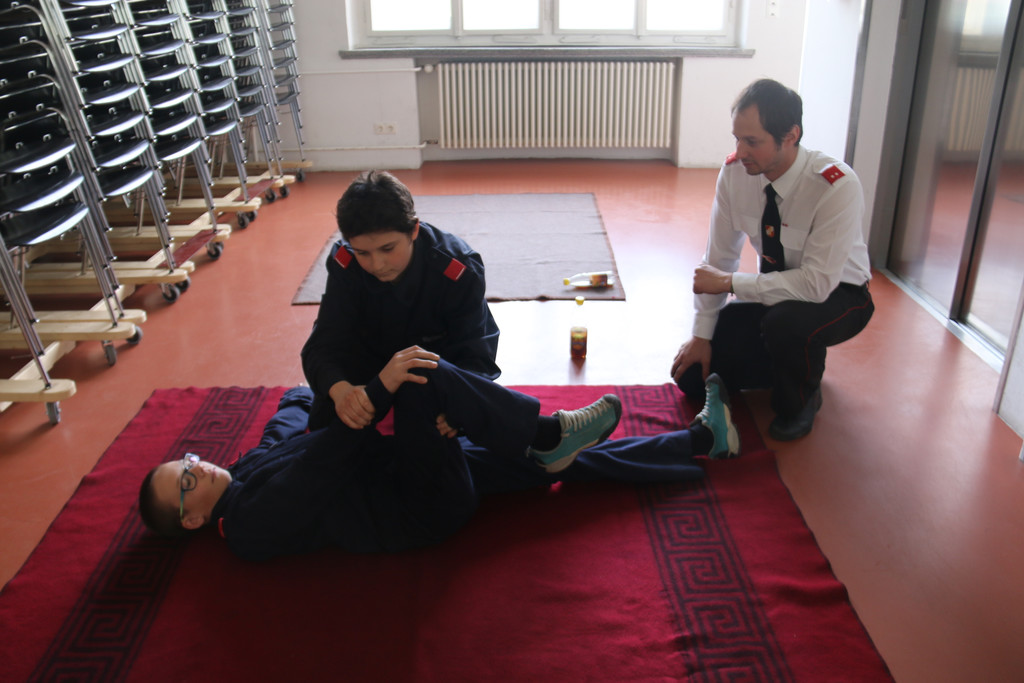 Muhammed und Jonas übten die stabile Seitenlage.