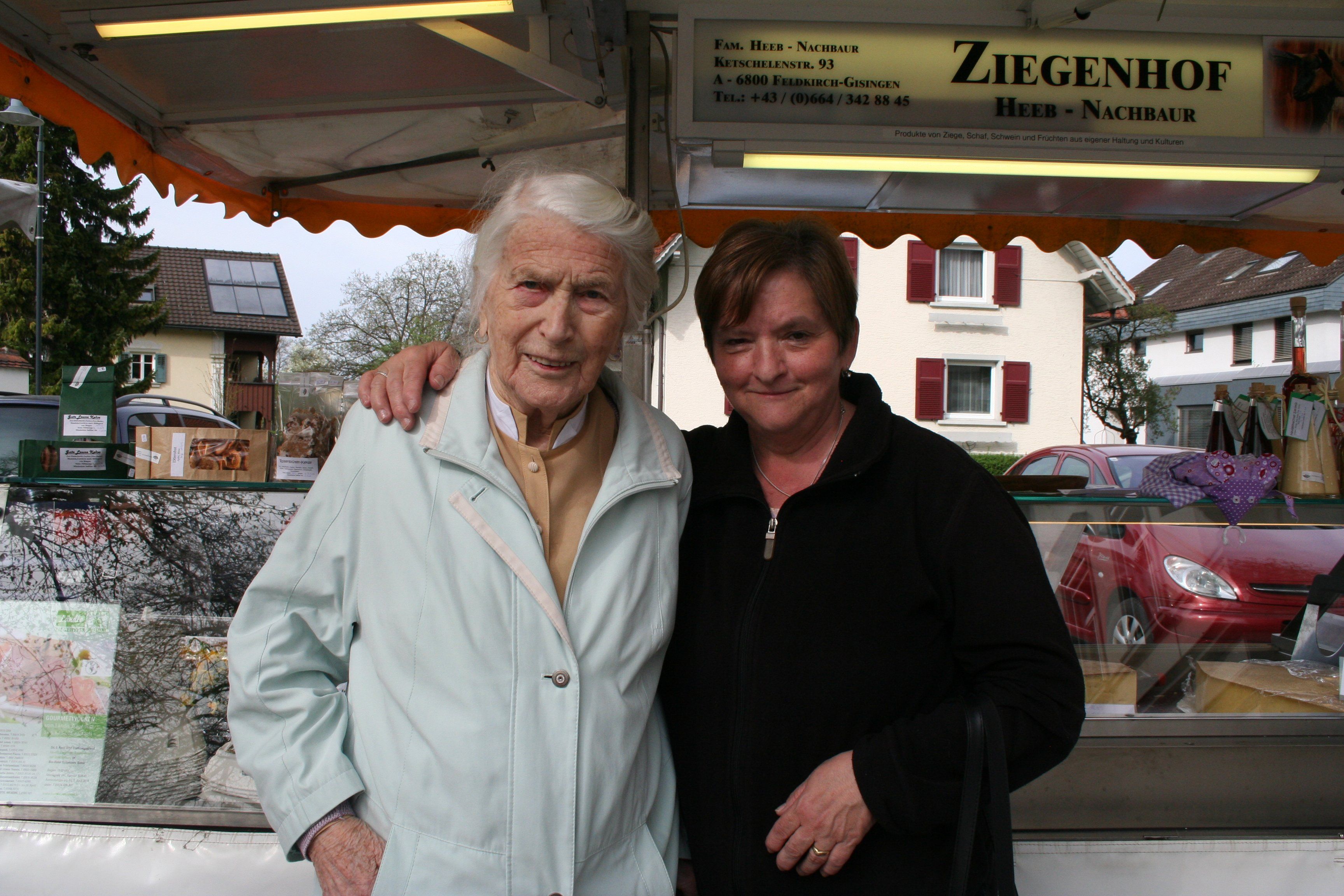 Wohl mit 96 Jahren die älteste Stammkundin: Theresia Allgäuer mit Doris Kratzer.