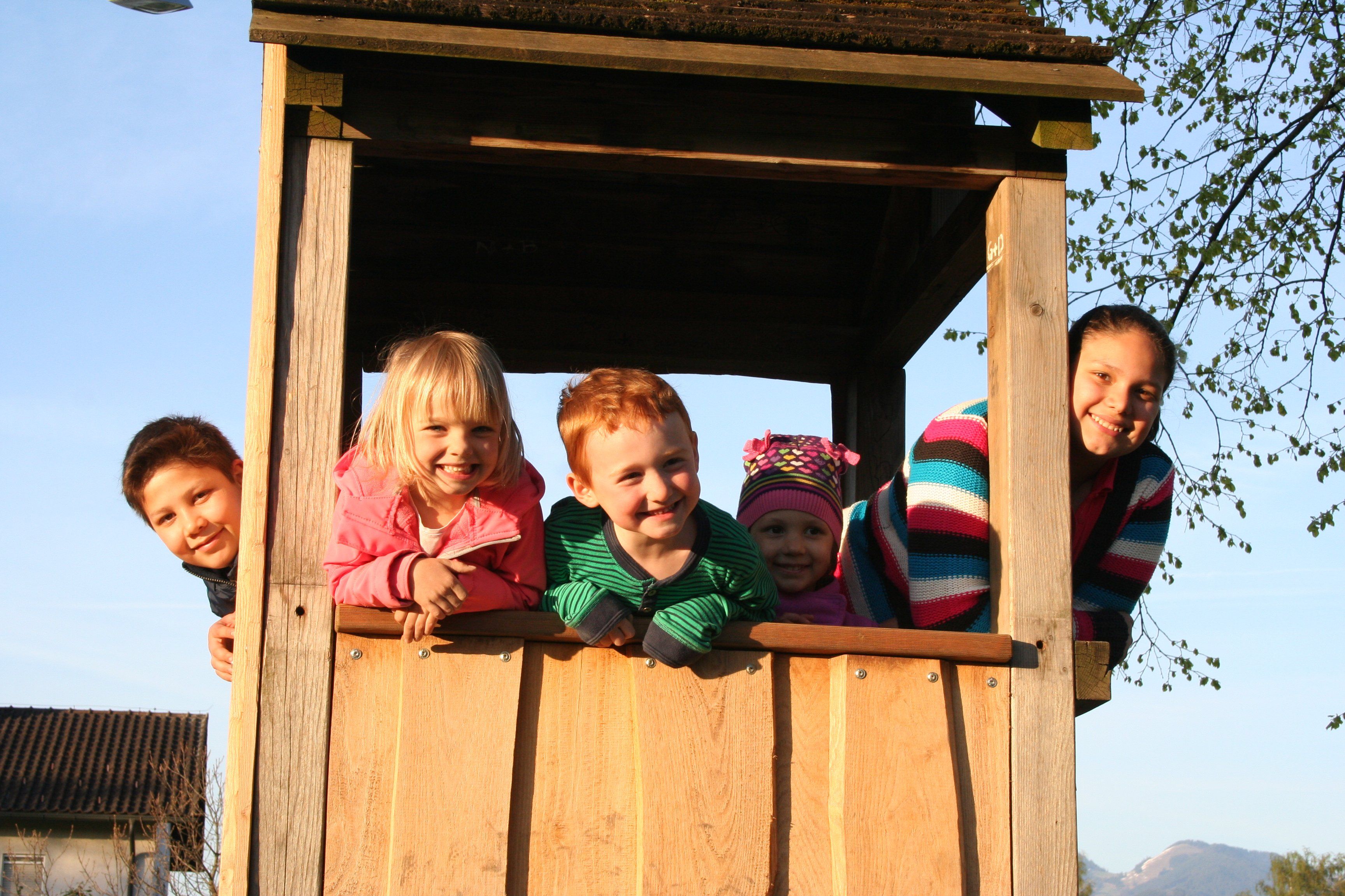 "Neuer Spielplatz" Oberau: Müberra, Betül, Ertugurul, Chiara und Valentin.
