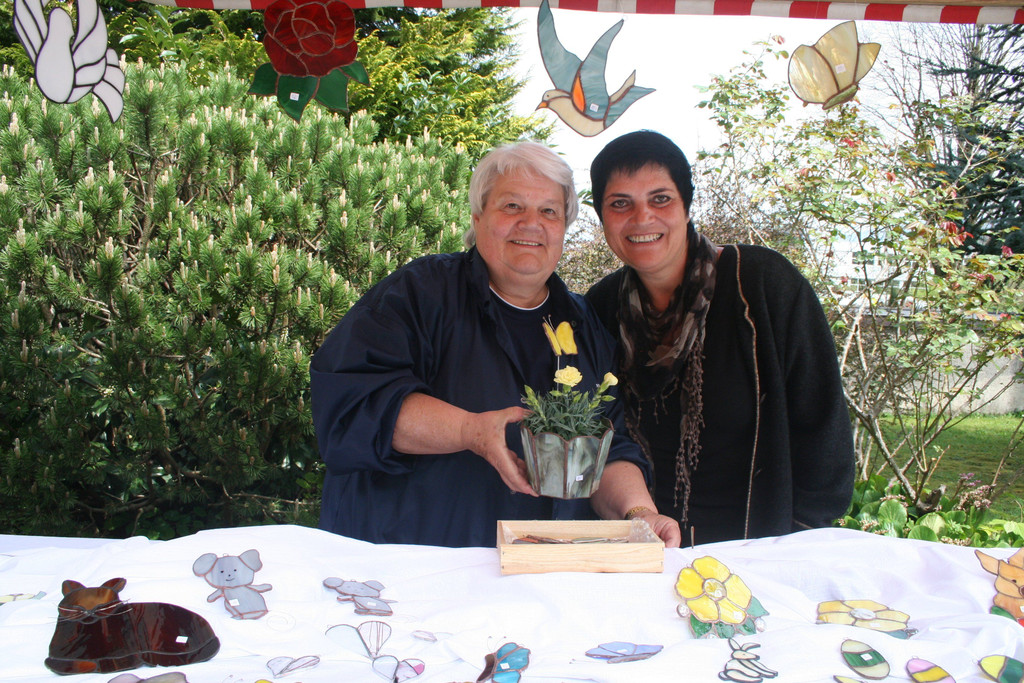 Edith und Gabi biten selbst gemachte Tiffany-Glaskunst an.