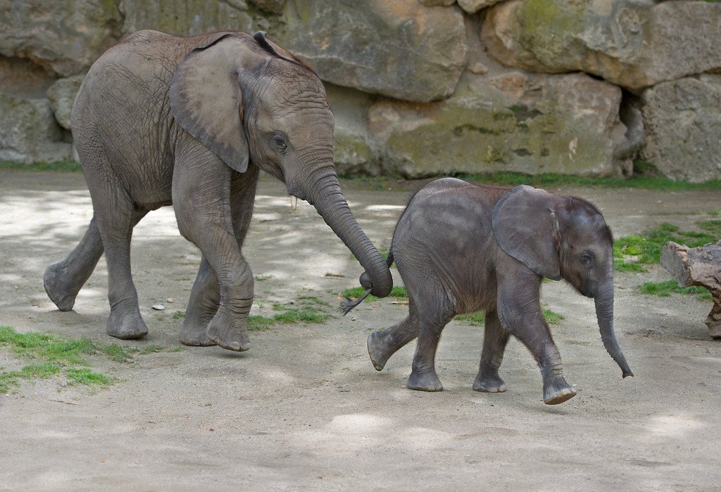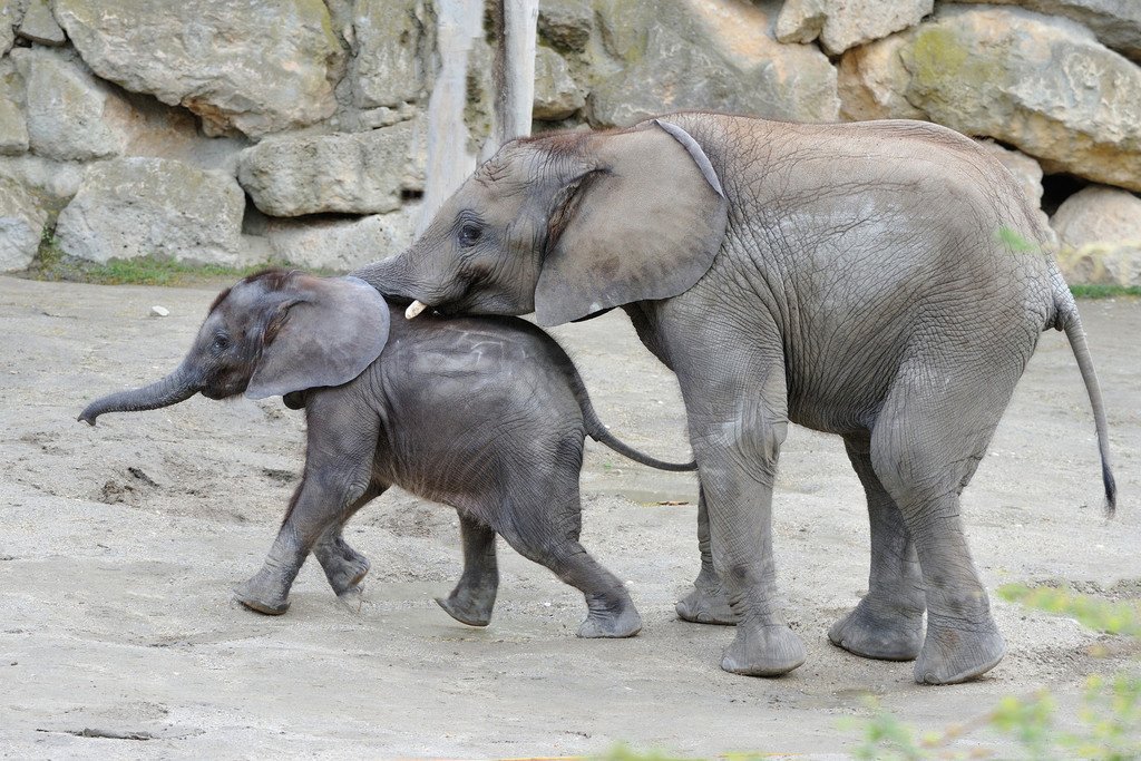 Elefanten-Kinder Iqhwa und Tuluba im Tiergarten Schönbrunn