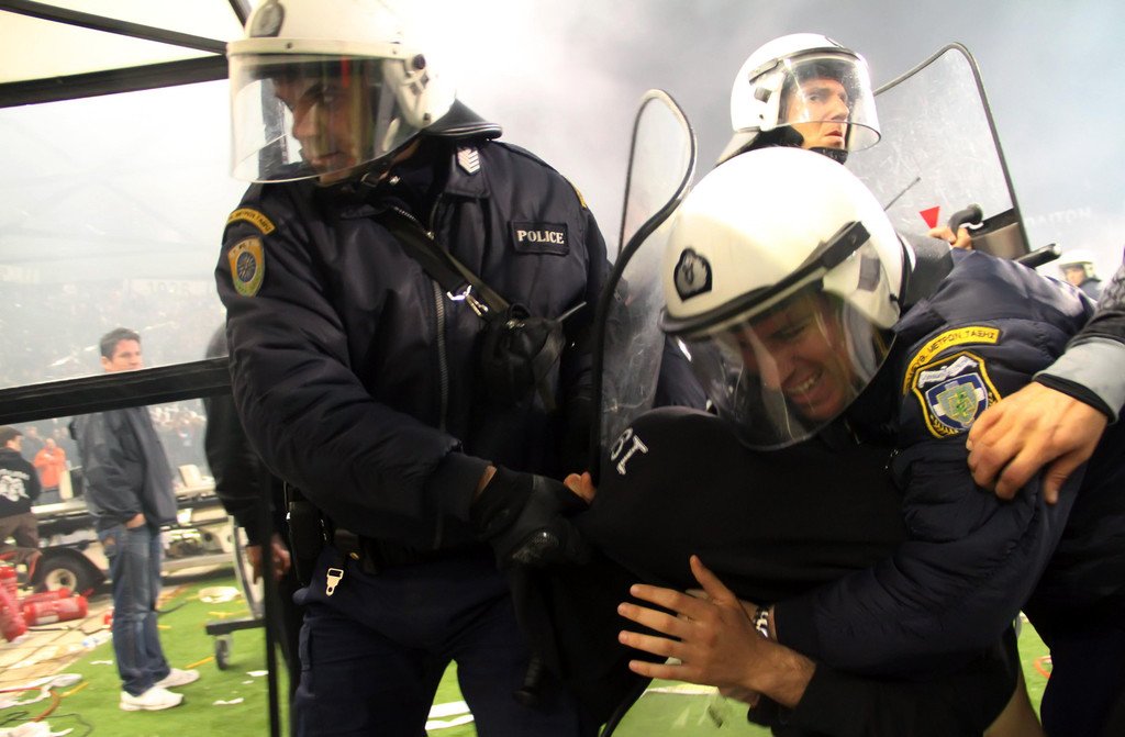 Griechischer Fußballcup: Bengalisches Feuer und Schlägereien