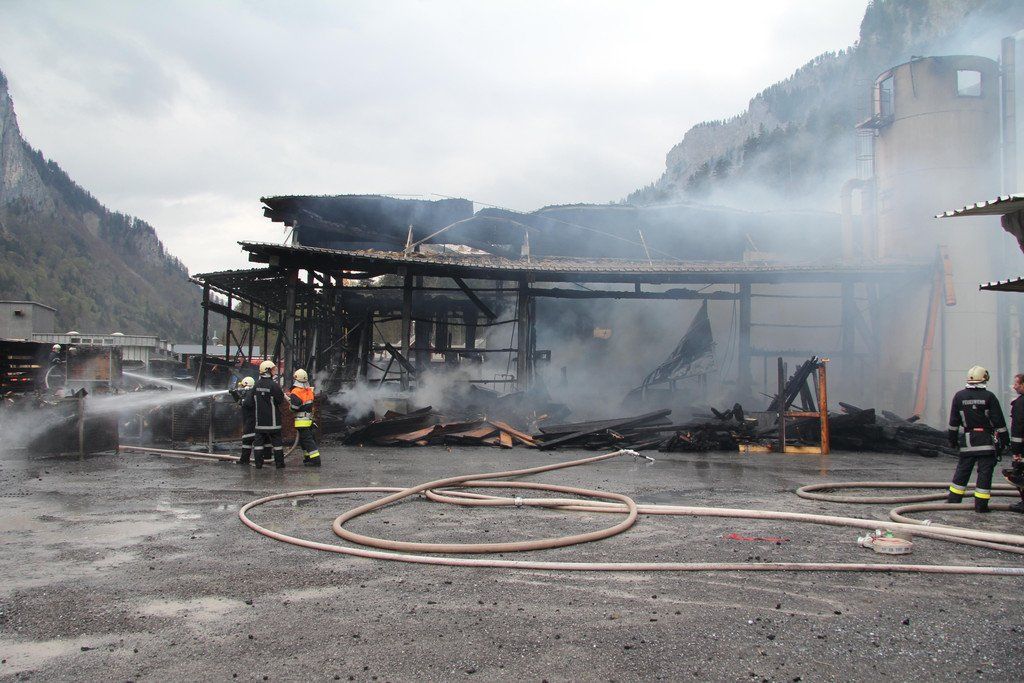 Großbrand in Au: Feuerwehr löscht Zimmerei "Feuerstein"