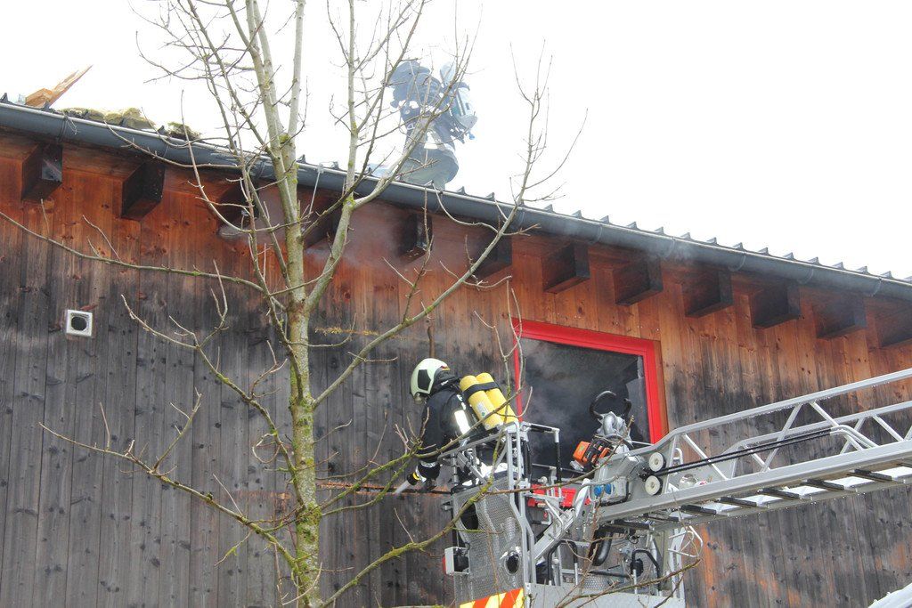 Großbrand in Au: Feuerwehr löscht Zimmerei "Feuerstein"