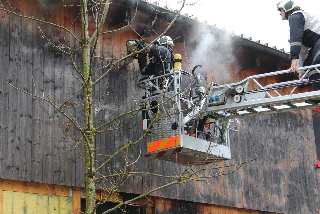 Großbrand in Au: Feuerwehr löscht Zimmerei "Feuerstein"