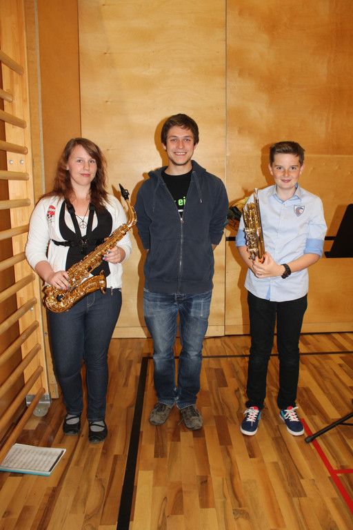 Rebecca Kneissl und Klemens Hammerer mit Jungmusik-Leiter Julian Nachbaur (Mitte).