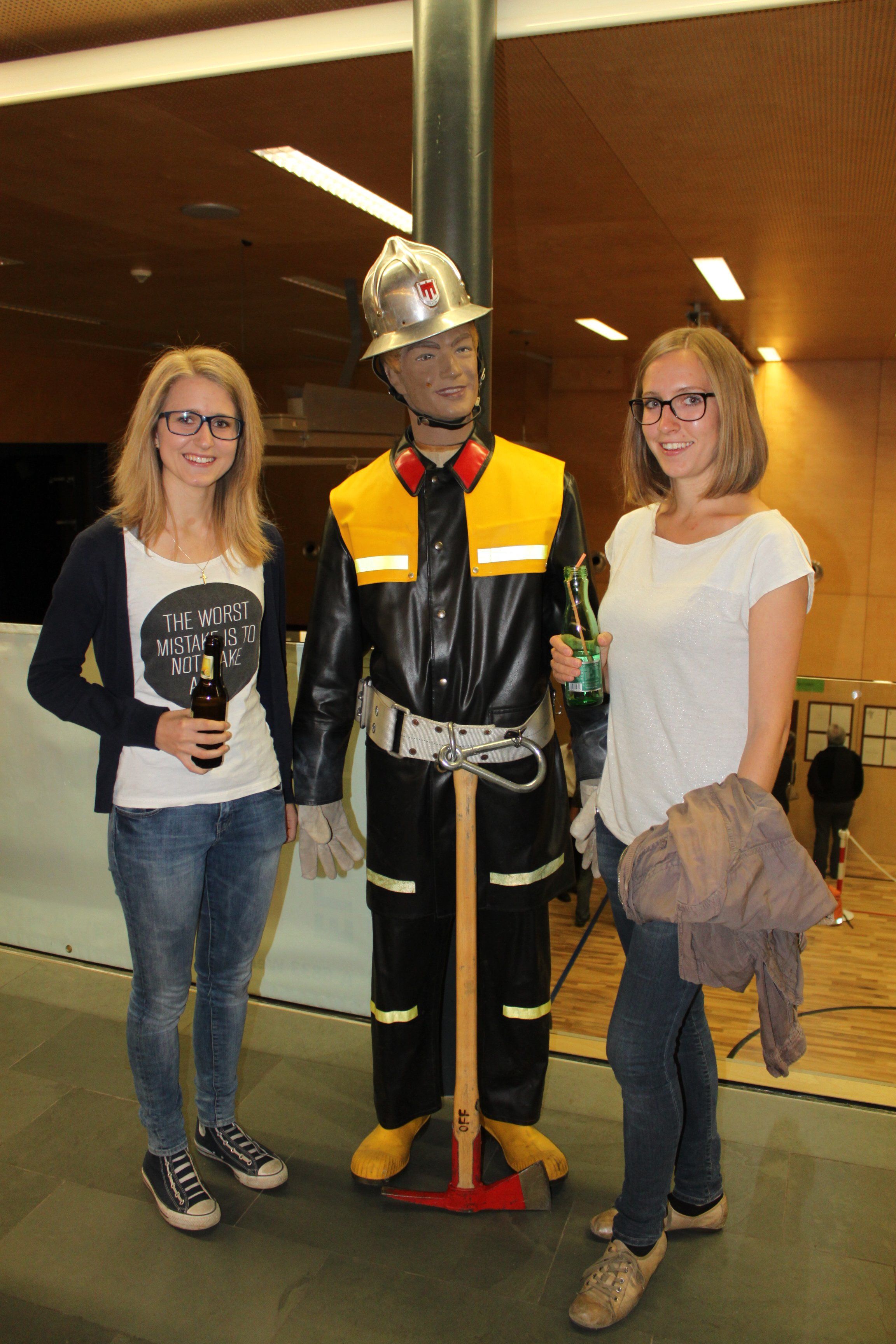 Klarissa und Laura Nachbaur mit einem Feuerwehrler von anno dazumal.