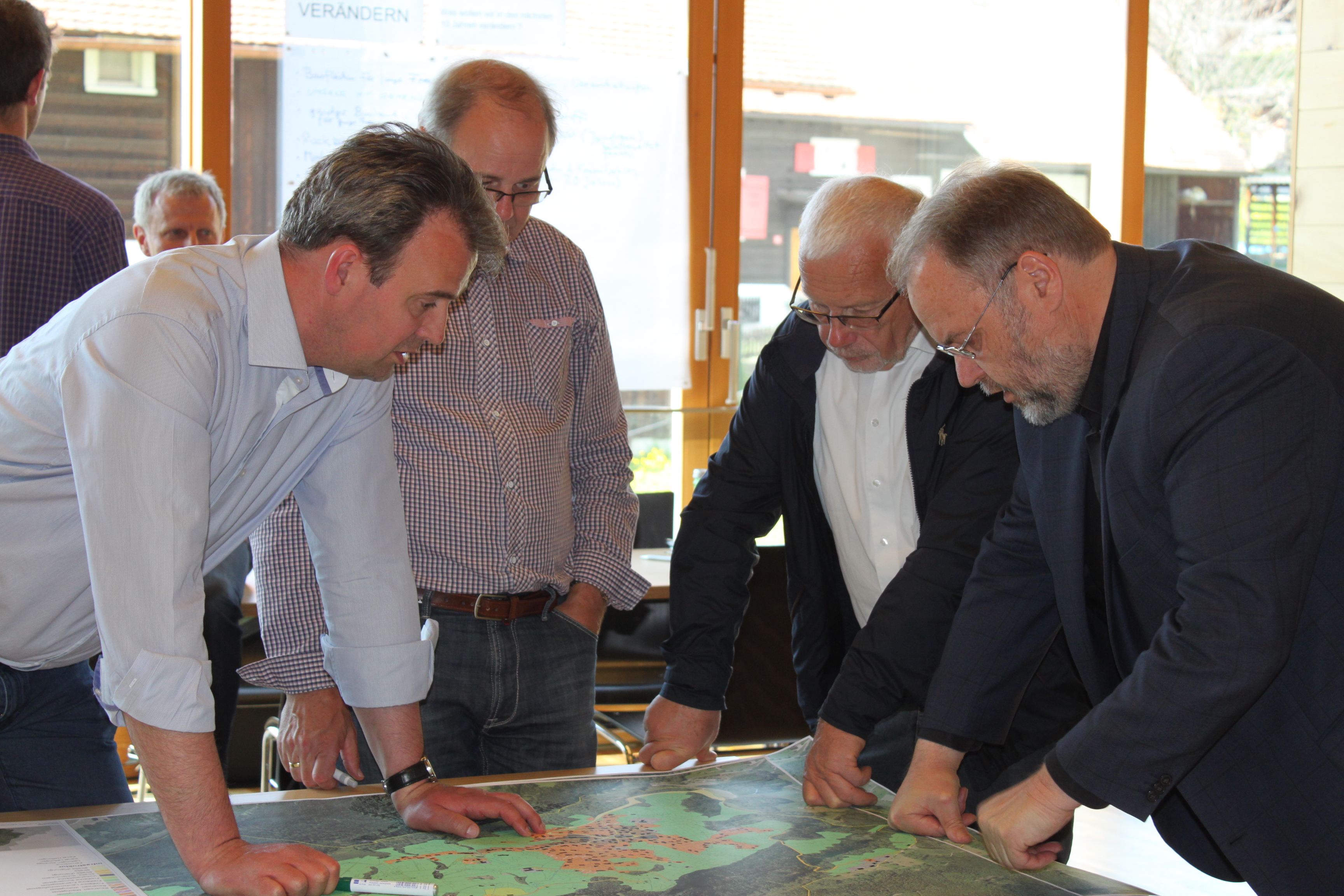 Auch die Nachbar-Bürgermeister Werner Müller aus Klaus und Dietmar Summer aus Weiler sind für grenzüberschreitende, positive Gemeinde-Gespräche zur REK-Planungswerkstatt erschienen.