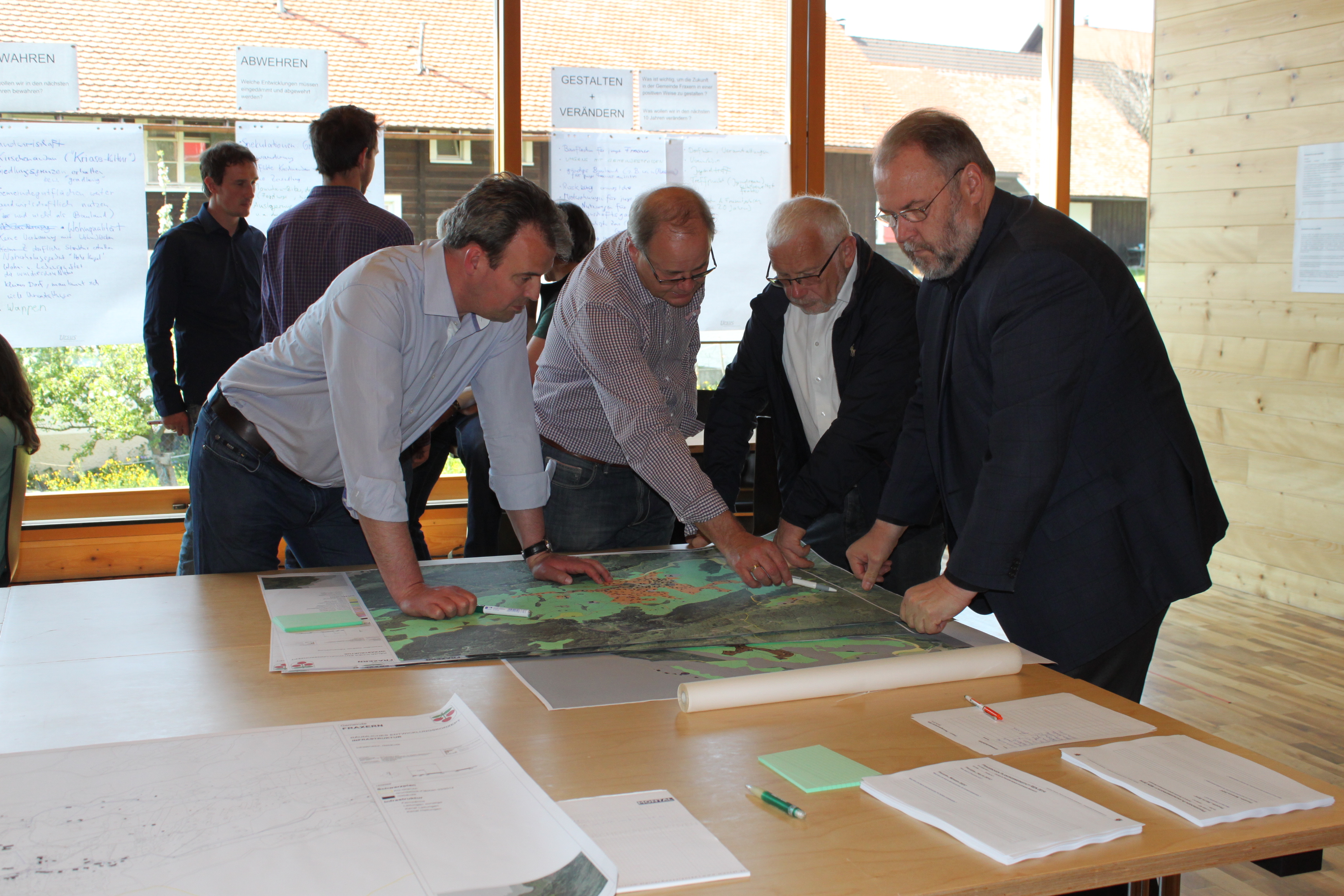 Auch die Nachbar-Bürgermeister Werner Müller aus Klaus und Dietmar Summer aus Weiler sind für grenzüberschreitende, positive Gemeinde-Gespräche zur REK-Planungswerkstatt erschienen.