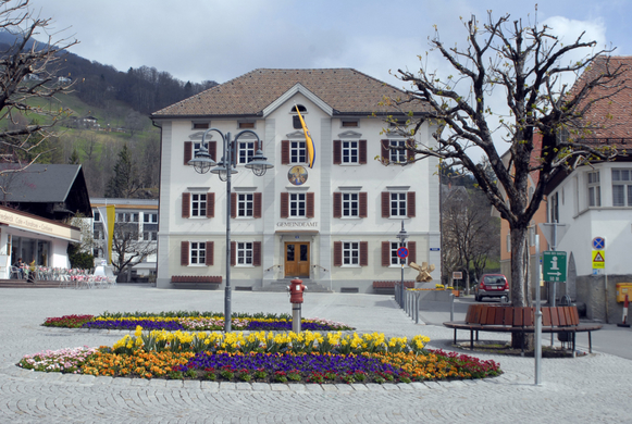 Gemeindeamt Schruns mit Blumenschmuck am 11. April 2010. (Foto: Gerhard Scopoli)