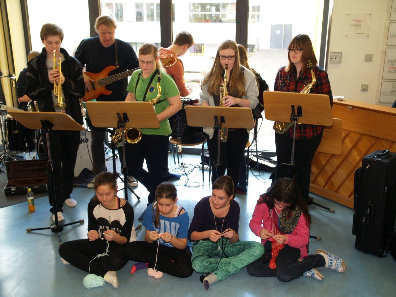 Schul-Bigband mit Schülerinnen beim Flashmop