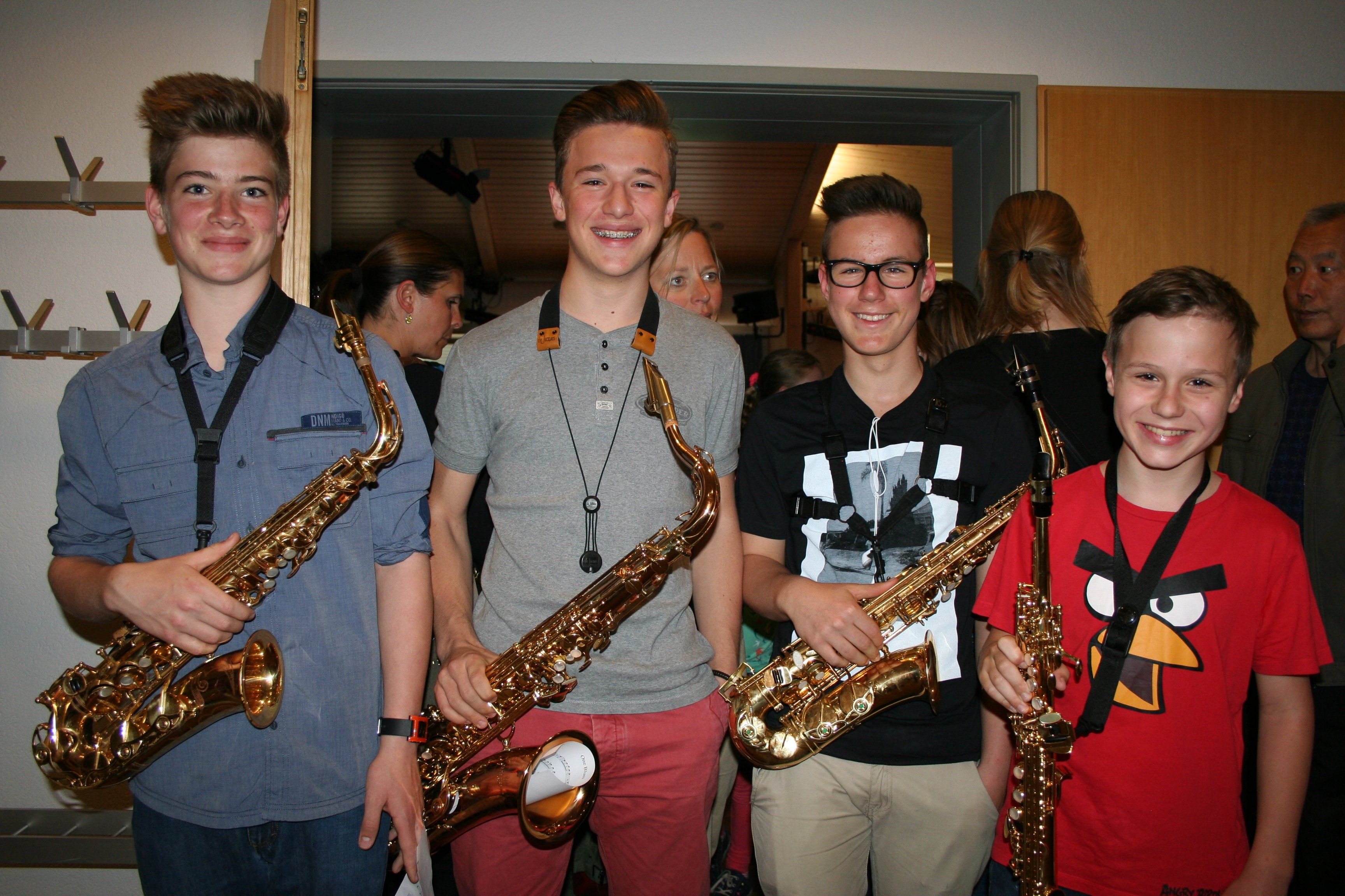 Luca, Michael, Philipp und Julian (Musikschüler Saxophon).