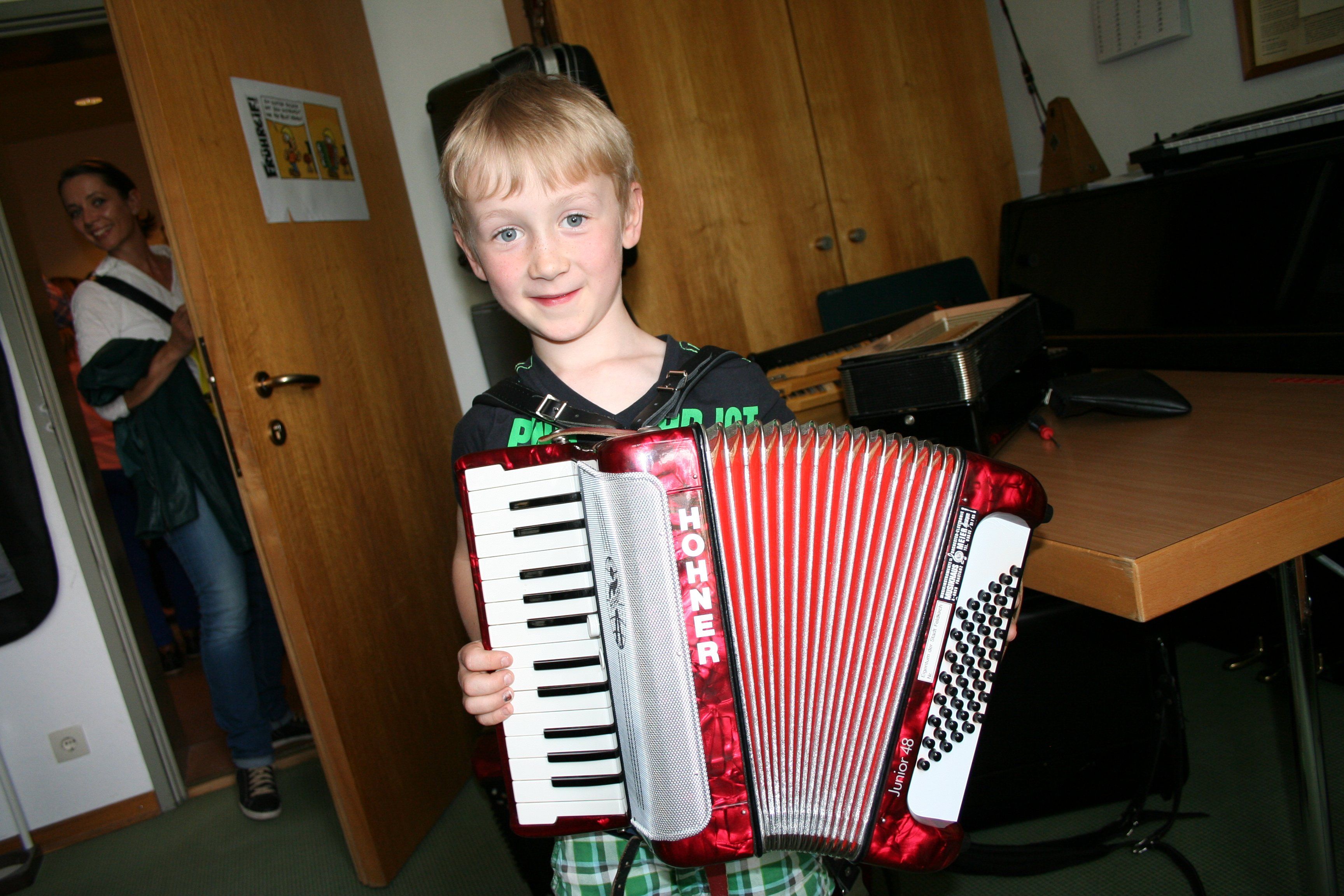 Besucher Yannik interessierte sich für das Akkordeon.