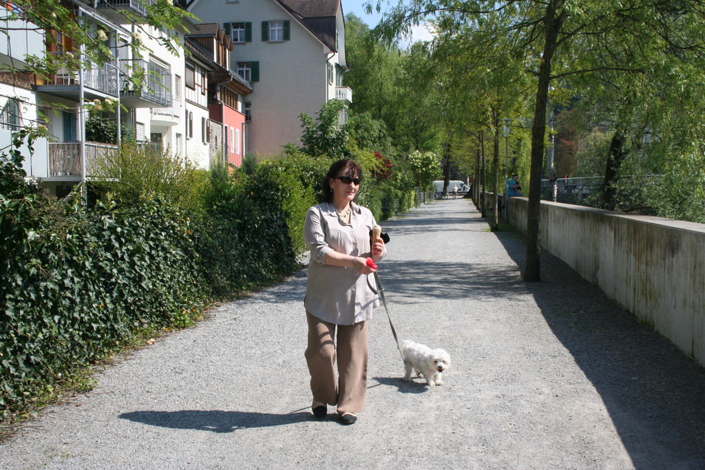Gemütlicher Weg entlang der Ill: Amiett mit Suna.