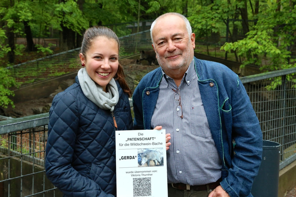 Wildparkpräsident Wolfgang Burtscher mit den Tierpatin Viktoria Thurnher