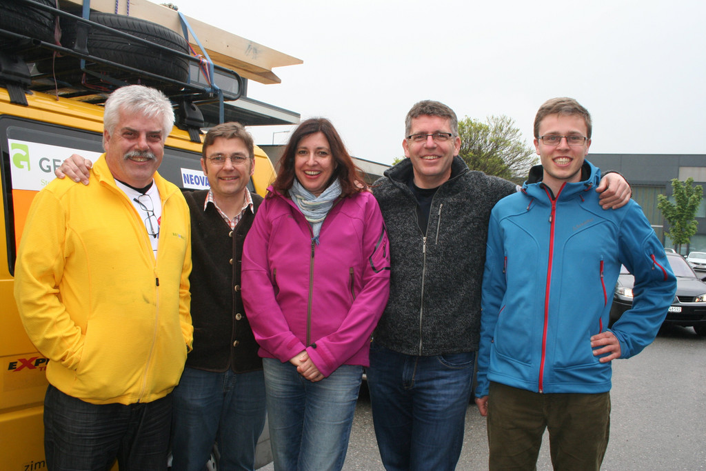 Kurt Gerstgrasser, Hubert und Angelika Grabher und Ernst und Michael Bertsch vom Team Nr. 90 der Allgäu-Orient-Ralley 2014.