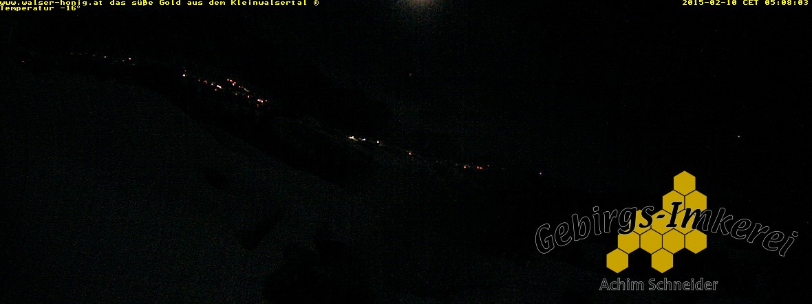 Blick in das Kleinwalsertal. Webcam bei der "Gebirgsimkerei Schneider" in Riezlern/Mittelberg auf 1.060 Meter Seehöhe. (Quelle: www.walser-honig.at)