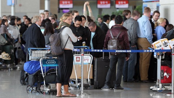 Menschen warten auf Flughäfen