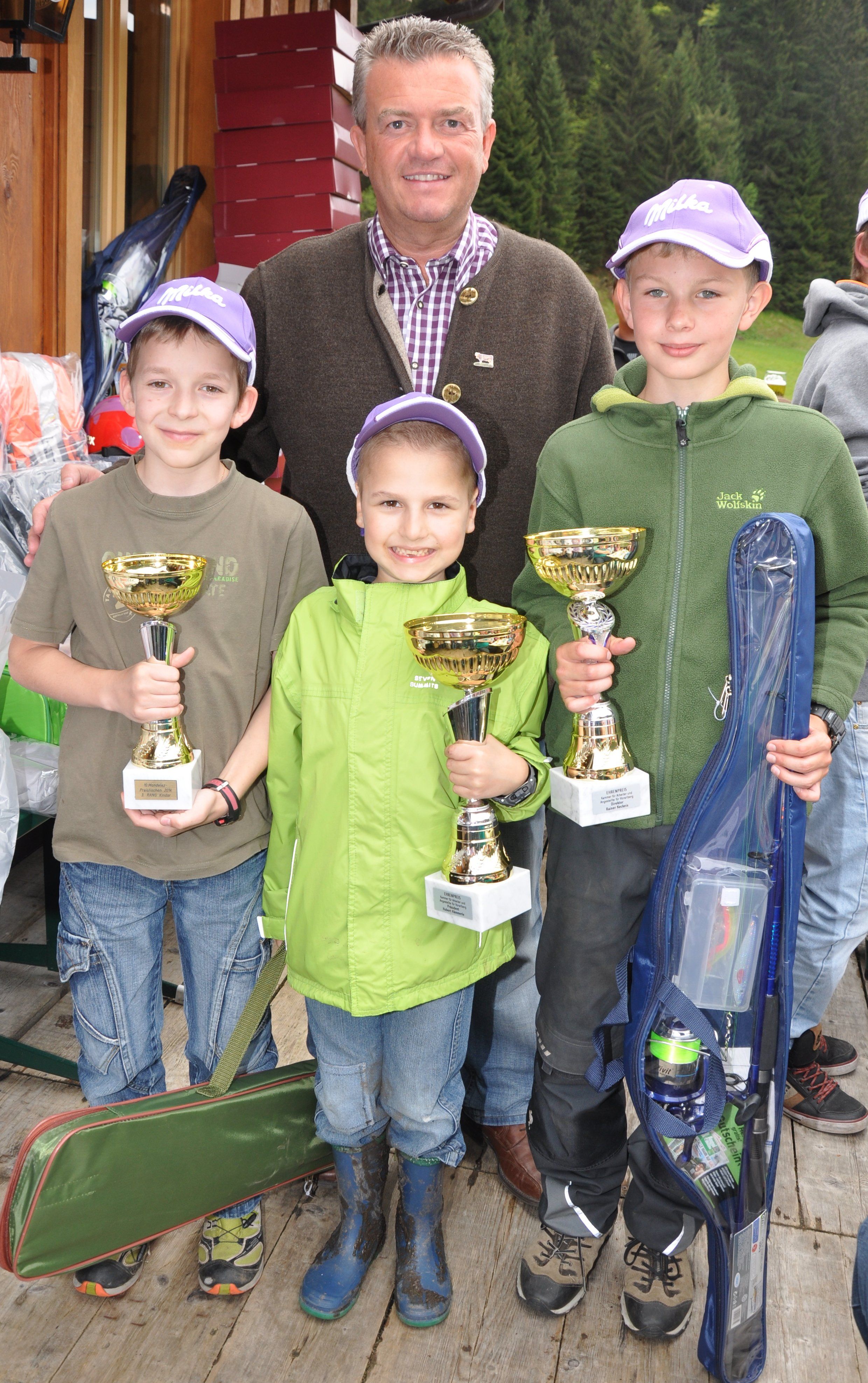 Von li. n. rechts: Richard Jenny, Luis Dietrich (Fischerkönig), Luca Pichler hinten: Oliver Grießer.