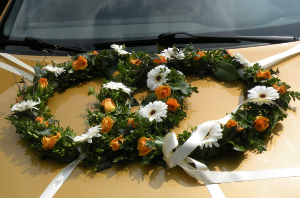 Blumenschmuck auf dem Auto.