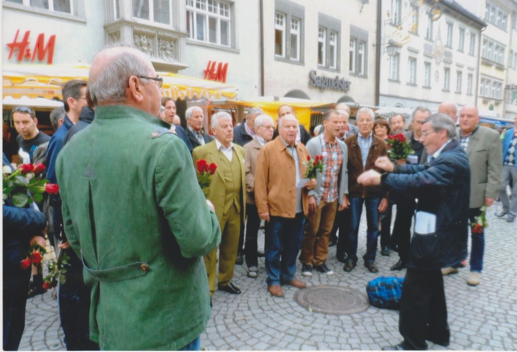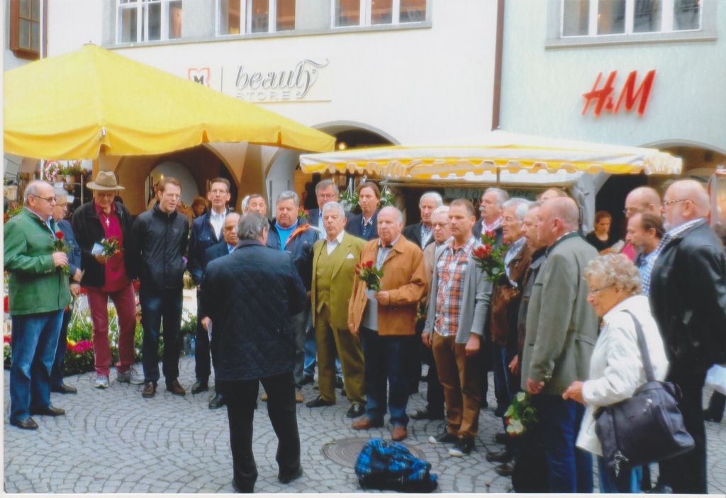 Prof. Mag. Walfried Kraher dirigiert seine Sangesbrüder durch eine Liederlanschaft Vorarlbergs und von Feldkirch