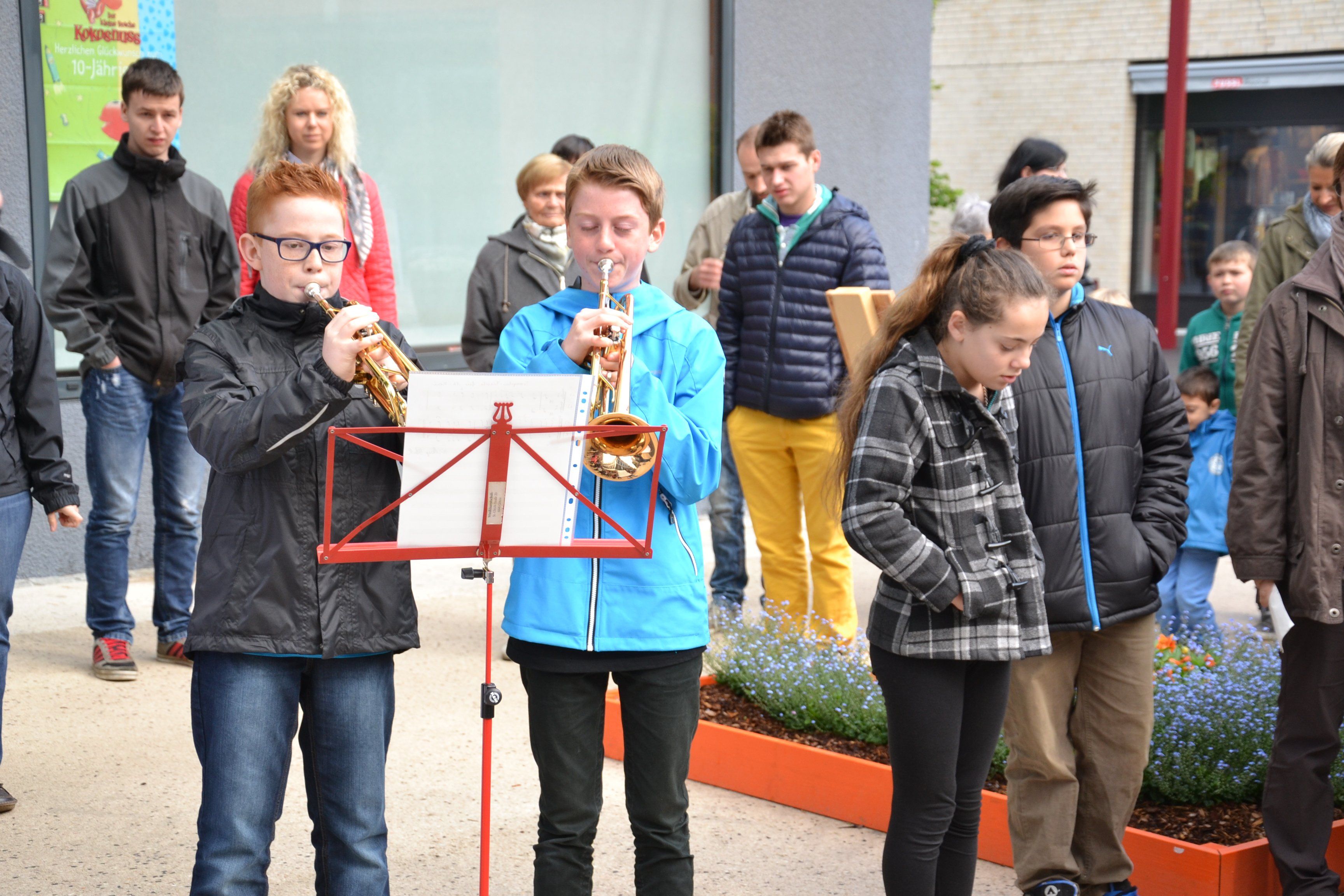 Samuel und Paul von der Musikmittelschule Götzis spielten Fanfaren auf....
