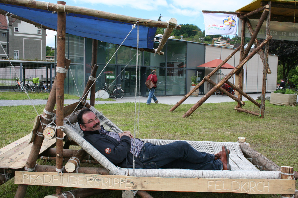 Fredy Himmer (OV Tosters) beim Testen der selbst gebauten Liege der Pfadfinder.