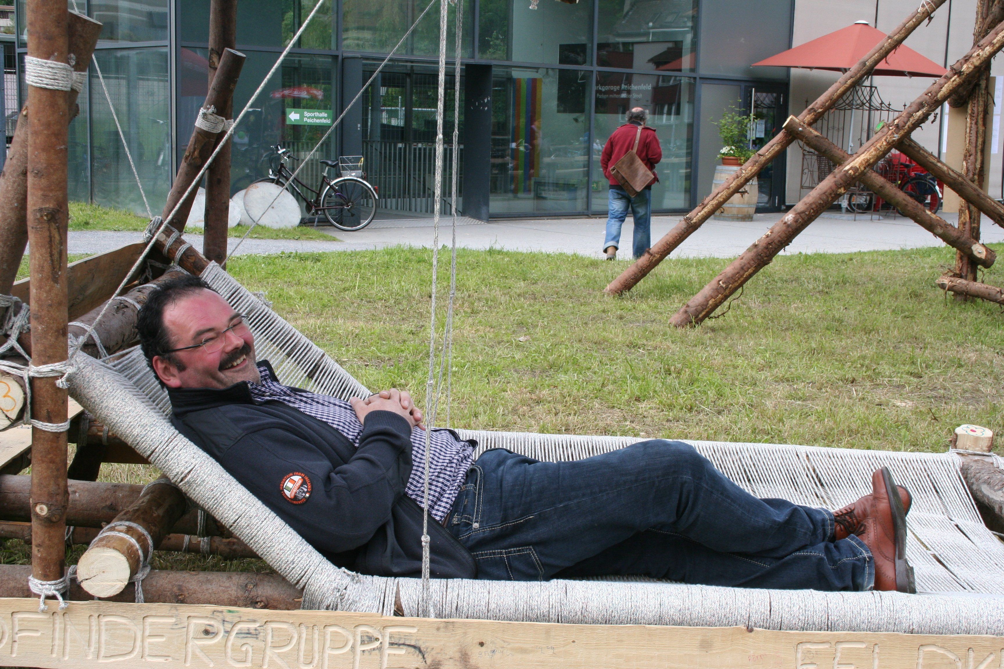 Fredy Himmer (OV Tosters) beim Testen der selbst gebauten Liege der Pfadfinder.