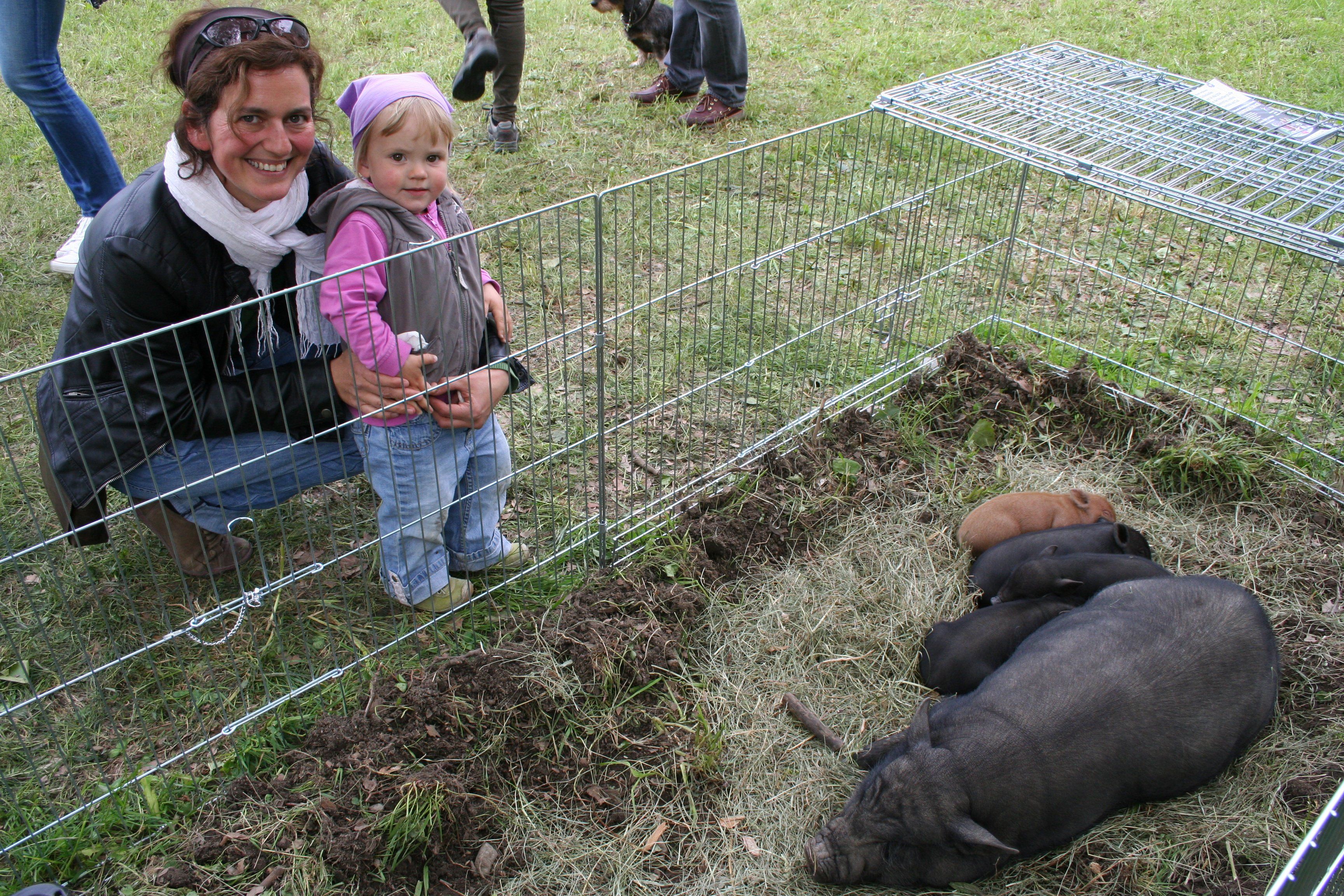 Mama mit Tochter Klara beim Streichelzoo des Vereins Wildpark.