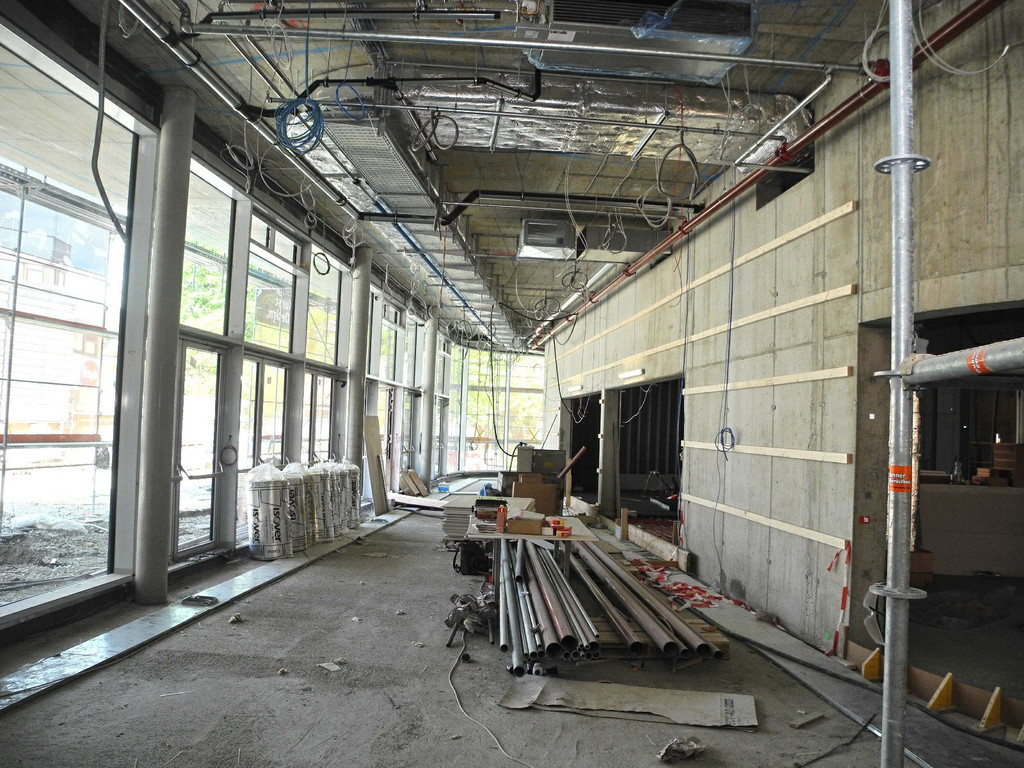 In jeder Ecke des Montforthauses sind die Bauhandwerker beim Arbeiten