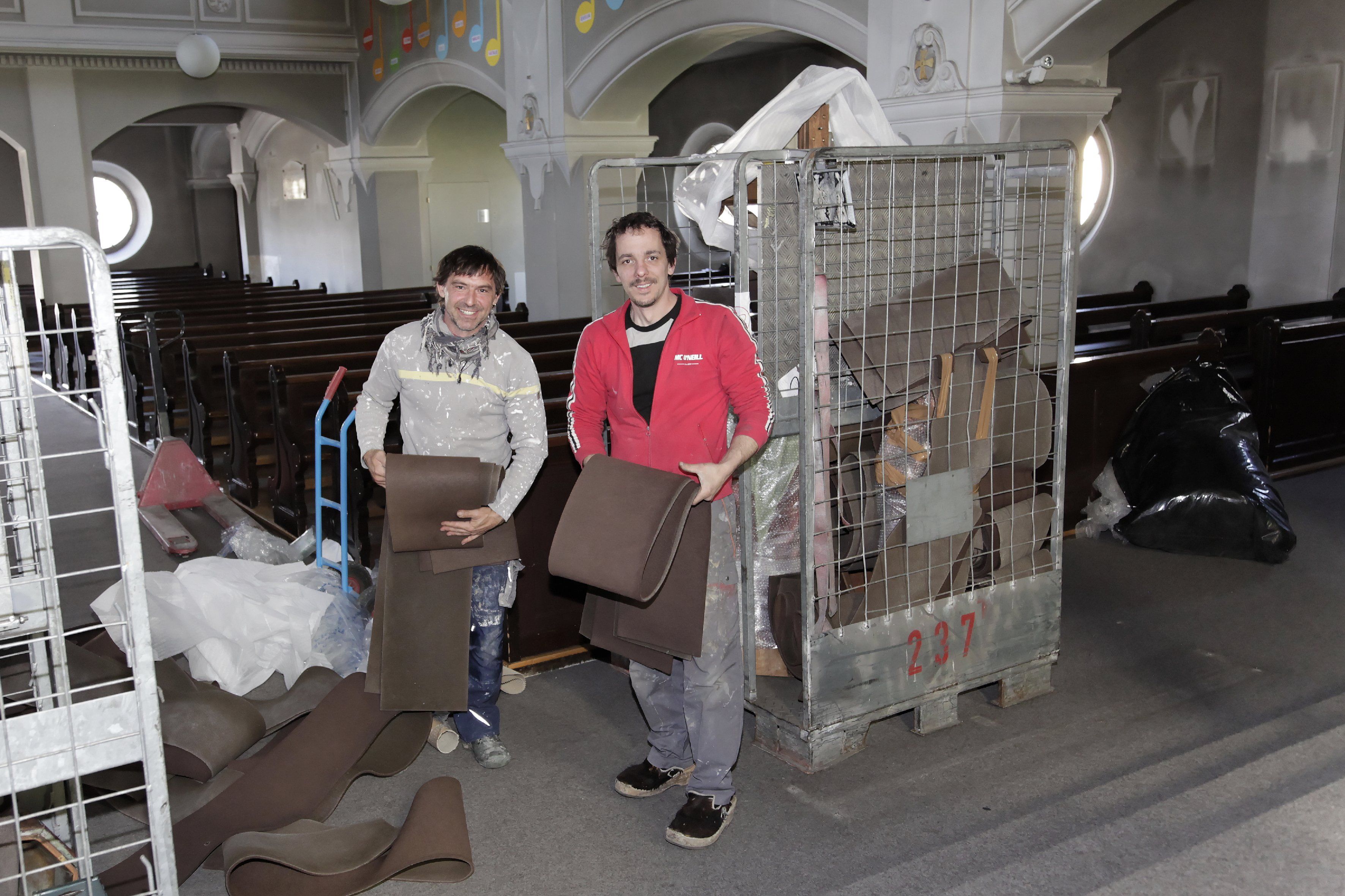 Freiwillige Helfer räumen die Kirche aus