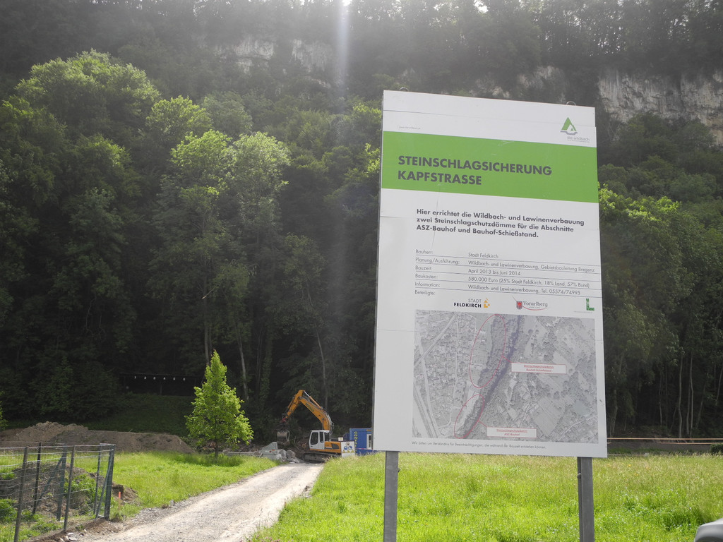 Diese Tafel zeigt das Projekt des Steinschlagschutzdammes Beim Schießstand
