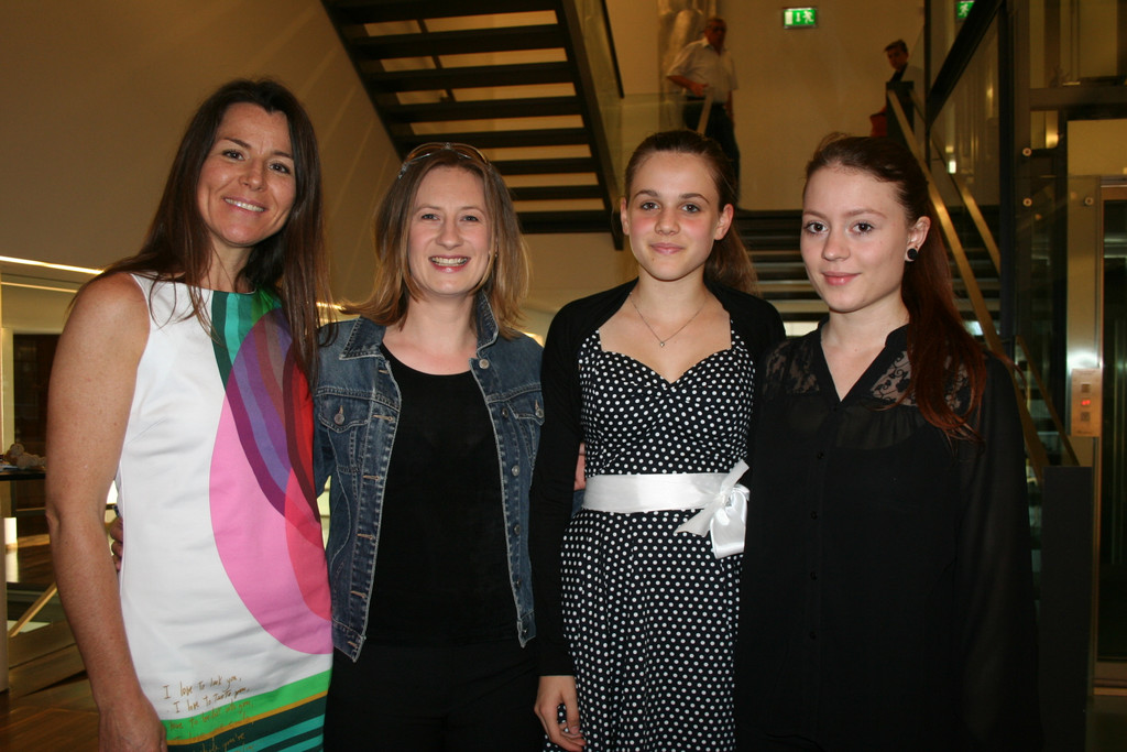 Sabine Walch (Ensembleleitung Blockflöte)und Johanna Scherer (Querflötenlehrerin) mit den Schülerinnen Stephanie Plank und Lisa Kopf.