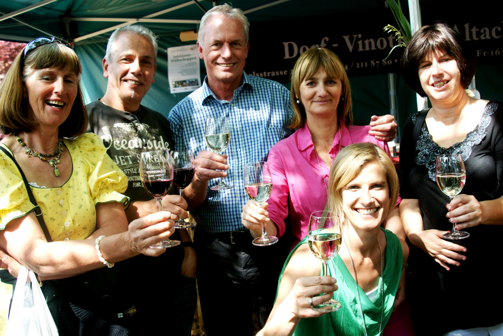 Fröhliche Laune auf dem Dorfplatz