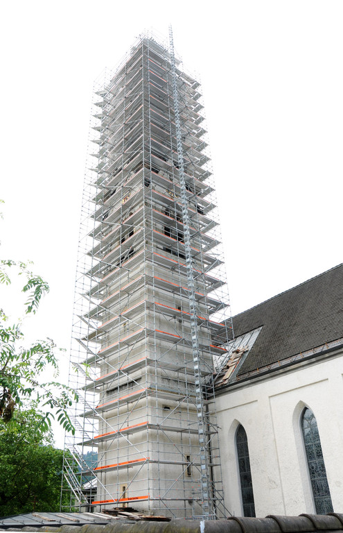 Kirchturm Kennelbach eingerüstet