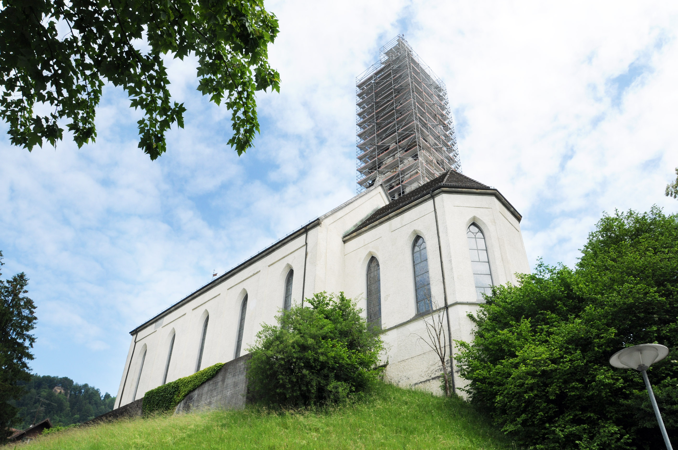 Kirchturm Kennelbach eingerüstet
