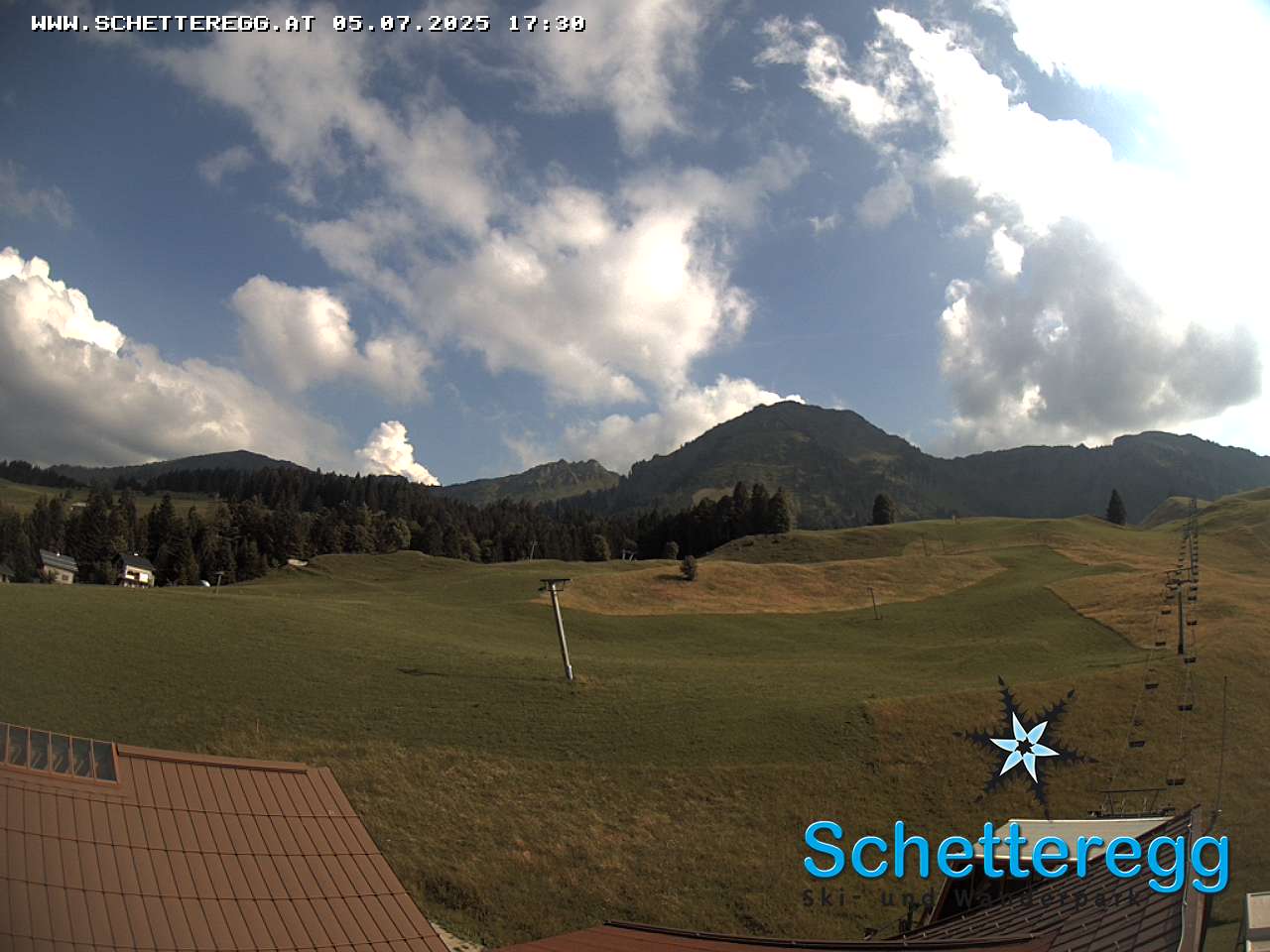 Blick auf das Ski- und Wandergebiet Egg-Schetteregg im Bregenzerwald. Webcam auf ca. 1.100 Meter Seehöhe. (Quelle: www.schetteregg.at)