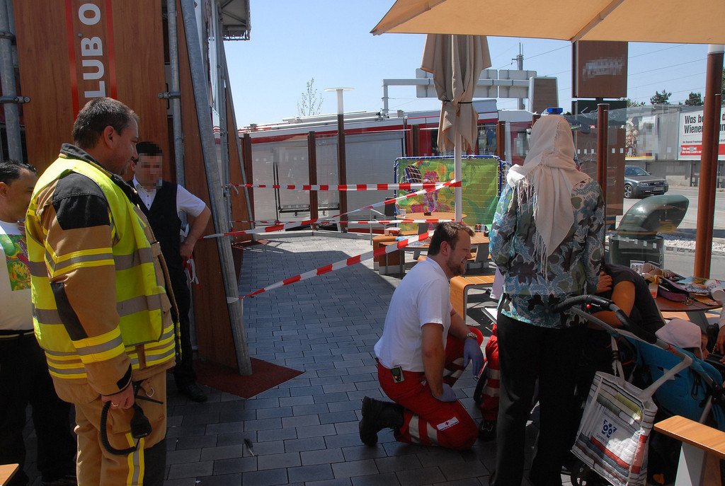 Kind blieb auf Restaurant-Spielplatz vor der SCS mit Kopf in Gitter stecken