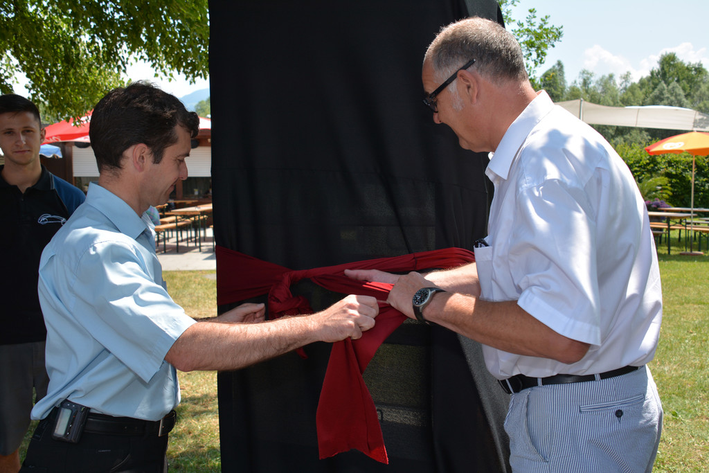 Bürgermeister Summer und Geschäftsführer Volker Buth enthüllen...