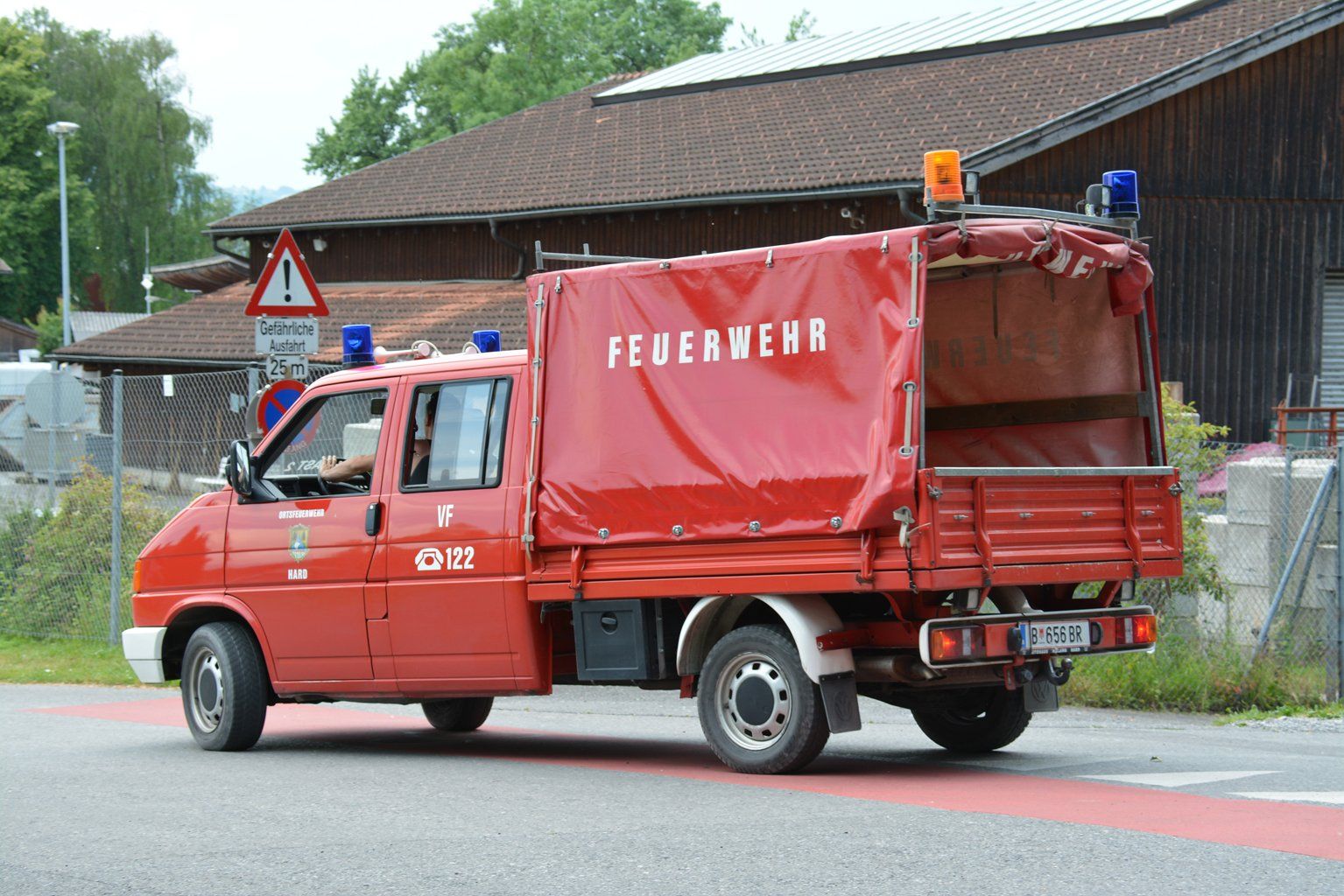 Aus allen Teilen Hards flitzen die Feuerwehrfahrzeuge Richtung Stedepark.