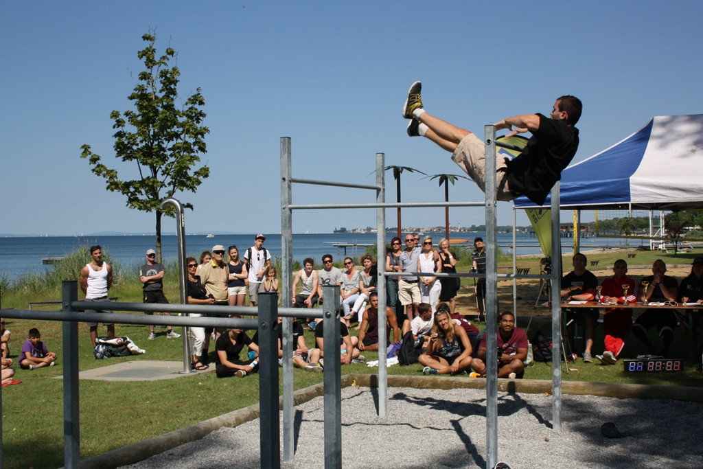 „Street Workout“-Staatsmeisterschaft auf der Train-Station im Lochauer Strandbad