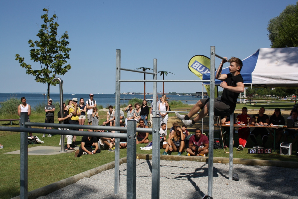 „Street Workout“-Staatsmeisterschaft auf der Train-Station im Lochauer Strandbad