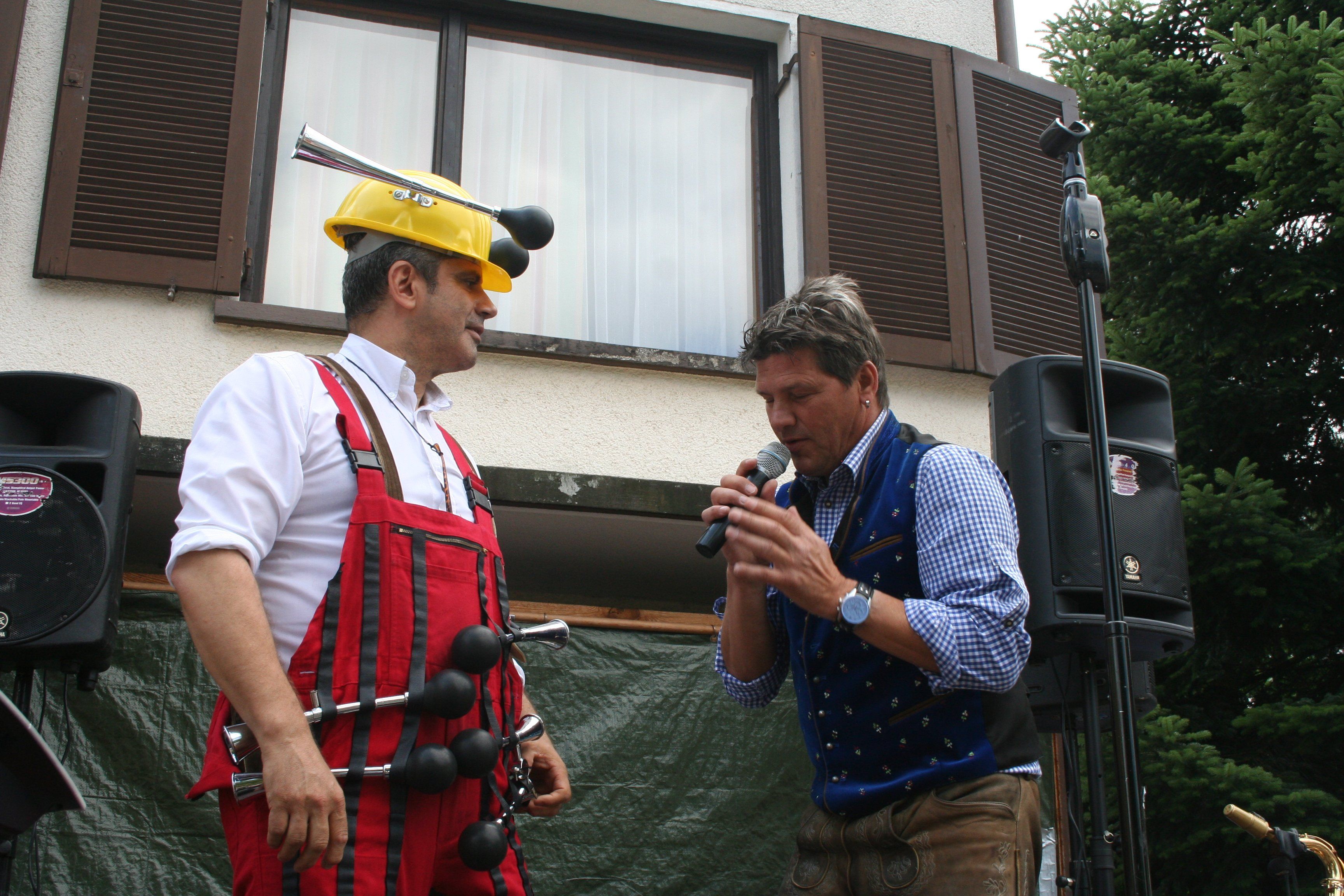 GF Wolfgang Kofler wurde von Gerry von den ehem. Klostertalern auf die Schippe genommen.