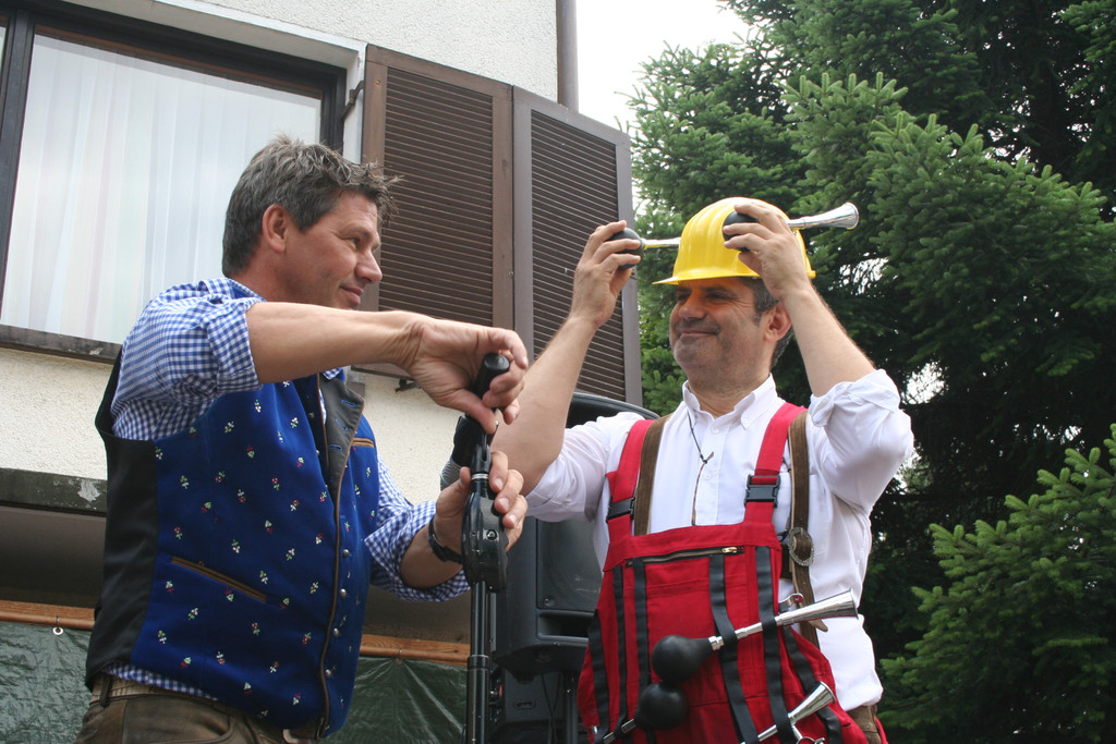 GF Wolfgang Kofler wurde von Gerry von den ehem. Klostertalern auf die Schippe genommen.