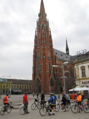 Fotostop vor dem ziemlich eindrucksvollen (katholischen) Dom St. Peter und Paul im Stadtzentrum von Ossijek