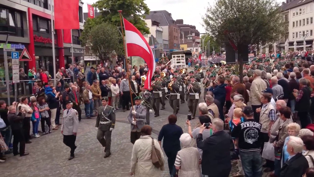 Parade der Militärmusik Vorarlberg in Mönchengladbach. Quelle: youtube