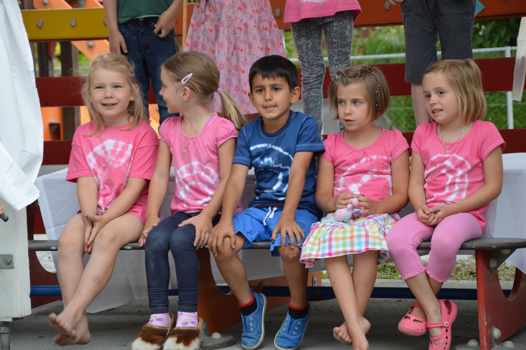 Olivia, Martina, Semih, Viktoria und Emilia von der Marienkäfergruppe sind mit Feuereifer bei der Sache.