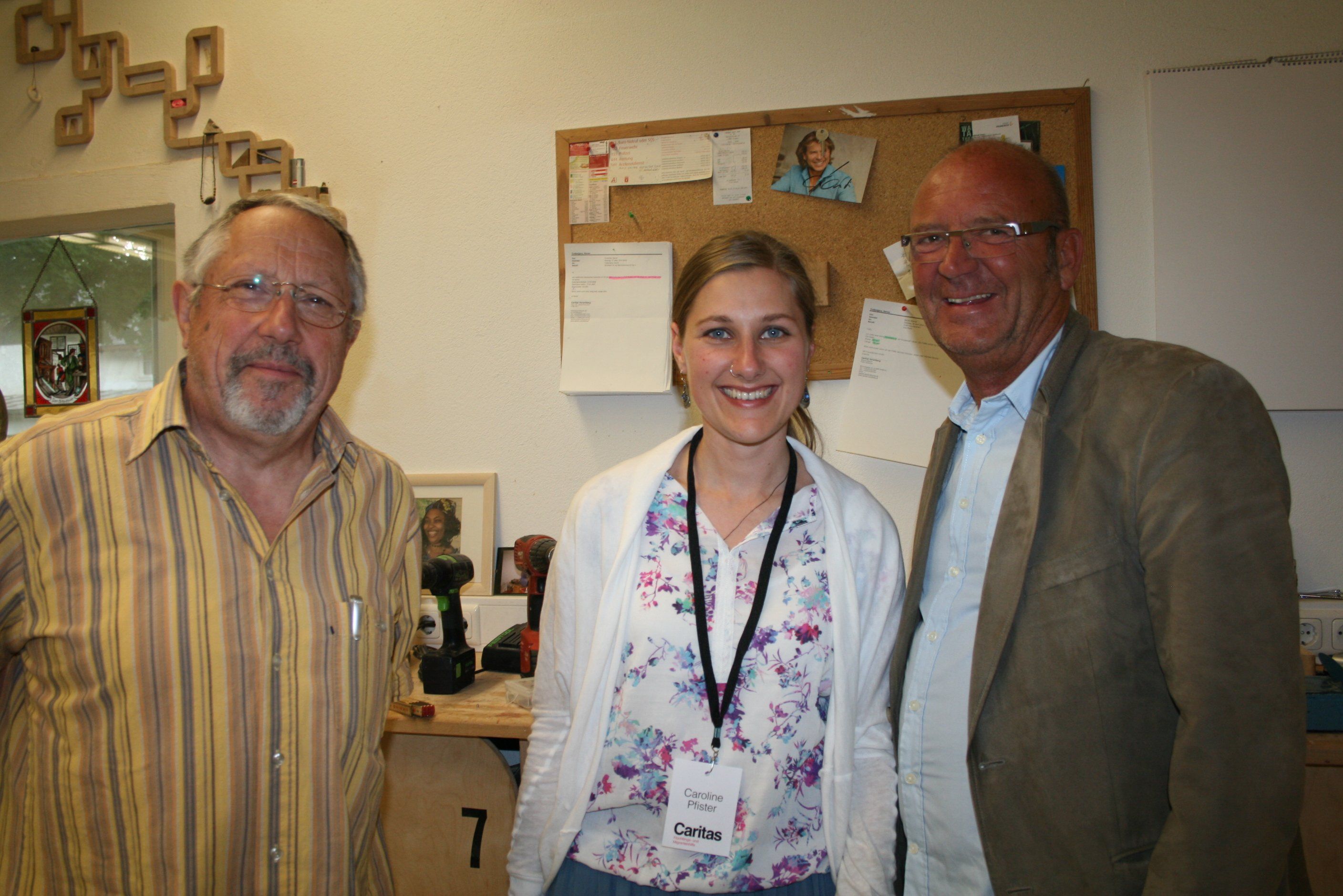 Flüchtlingsbetreuerin Caroline Pfister (Mitte) und Ortsvorsteher Peter Vaschauner (r.).
